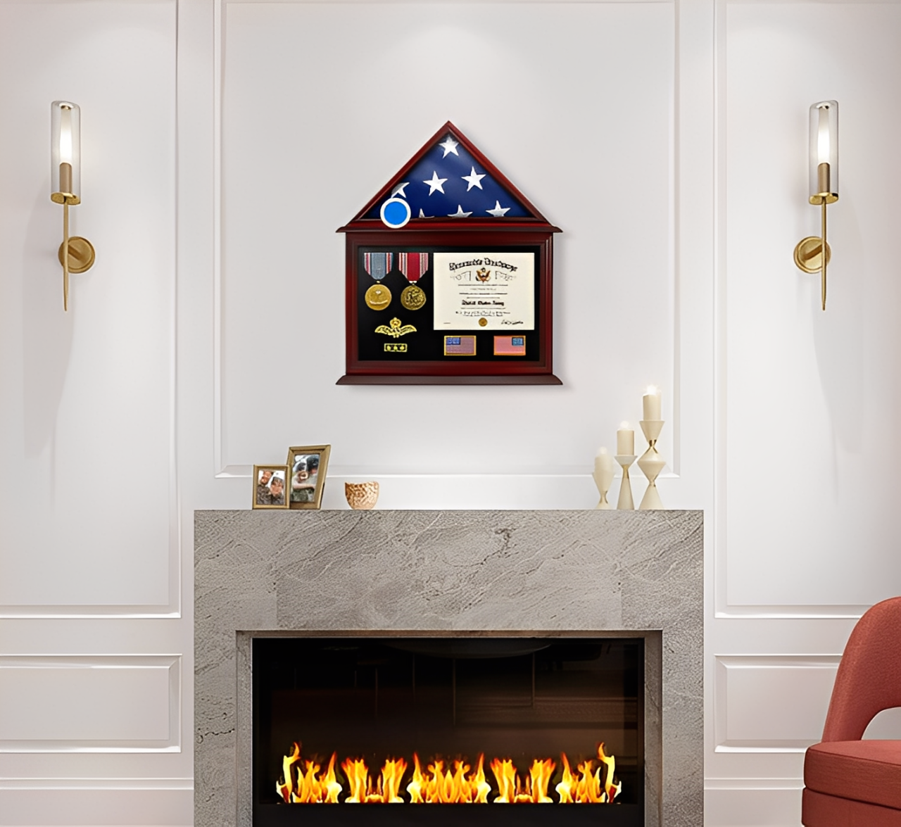Anti-Fade Acrylic Door / Wooden Wall Mounted Coin Display Stand with Magnetic American Flag Holds 64-73 Coins